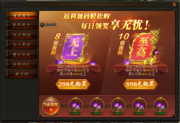 3. 传奇重卡进度积分不计入豪华周卡积分进度,豪华周卡进度亦不进入传奇周卡积分进度