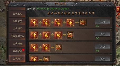 5、「金秋集字」金秋狂欢期间刷怪掉落金秋送好礼的道具,可兑换福利道具;