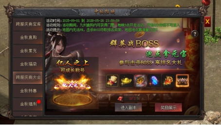 3、「金秋烟花大会」消耗门票,跨服世界BOSS,争夺庆福券;